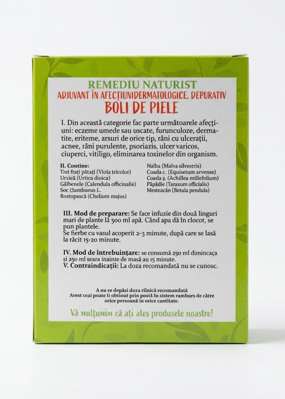 REMEDIU NATURIST ADJUVANT ÎN AFECȚIUNI DERMATOLOGICE, DEPURATIV BOLI DE PIELE